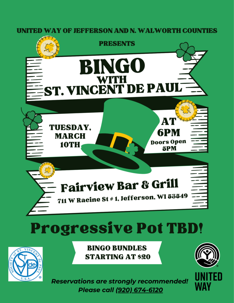 Join the United Way on the 2nd and 4th Tuesday of the month at the Fairview Bar & Grill for BINGO!